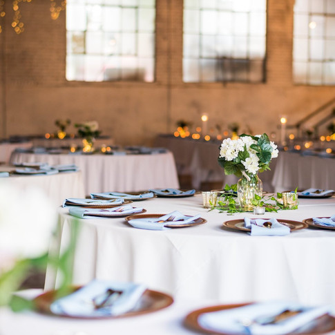 The Browns wedding was on a beautiful summer day in downtown Siloam Springs. Bentley's bridesmaids were dressed in a soft sky blue color that popped against the greenery of downtown and the industrial windows in the Brick Ballroom. The accent color gold was used throughout the reception, the chargers, utensils & ombre through out her three tiered cake. It was a perfect summer wedding at this industrial wedding venue in northwest Arkansas.